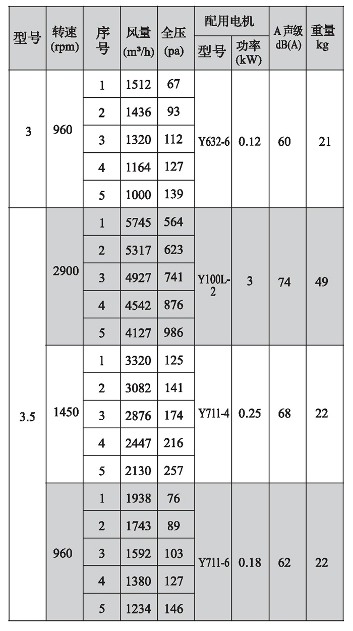 SWF-I系列混流式風機性能參數(3)