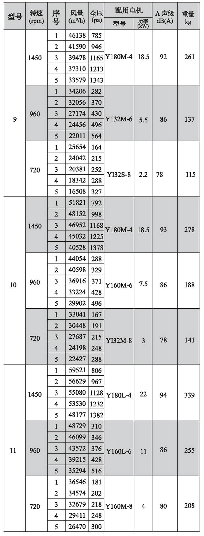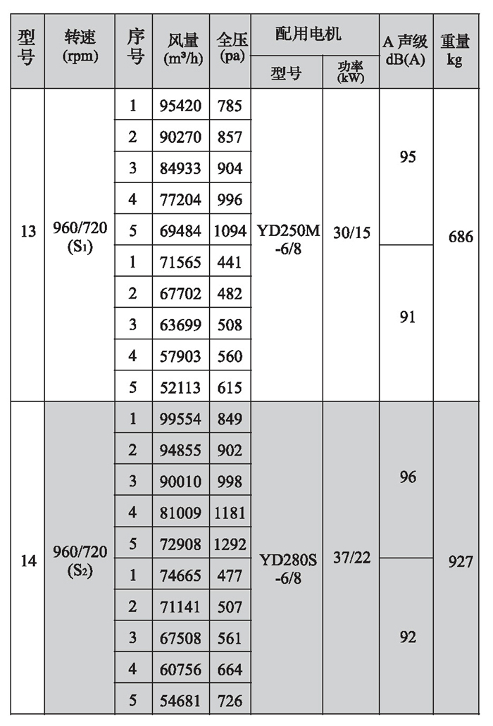 SWF-II系列混流式風機性能參數(1)