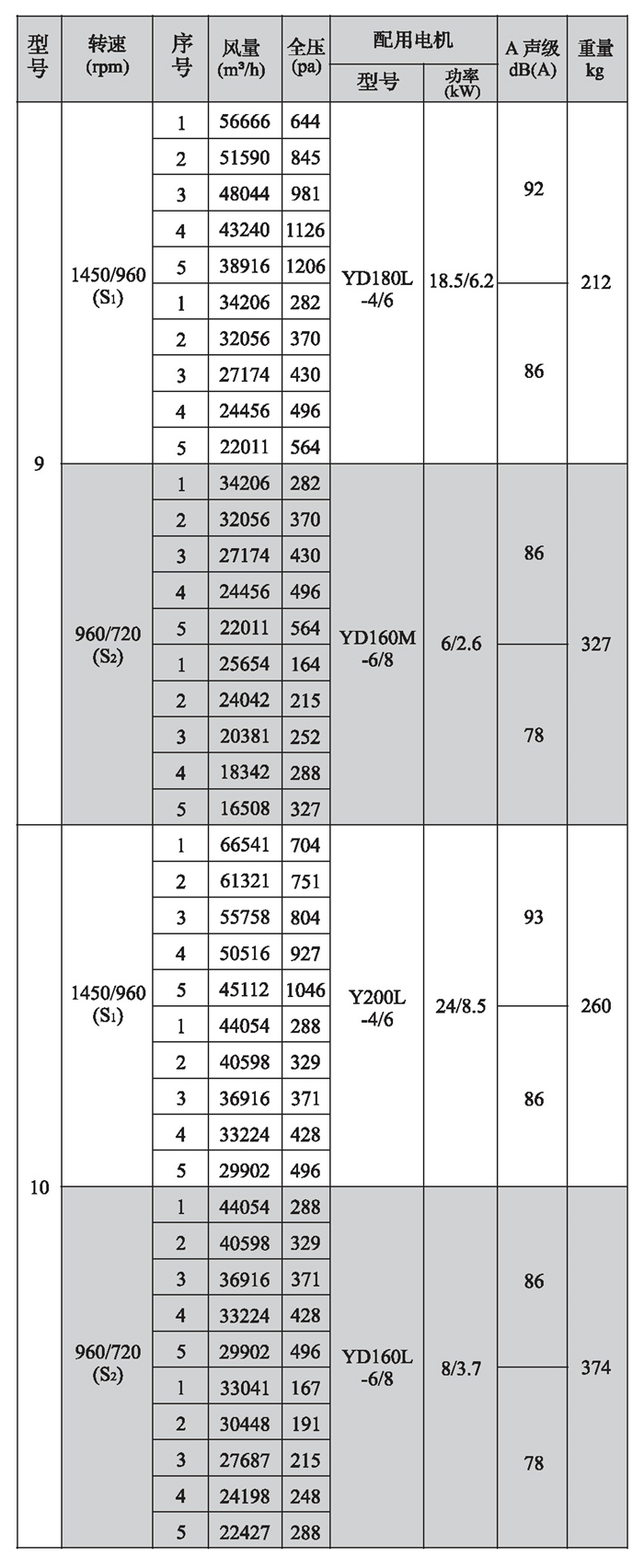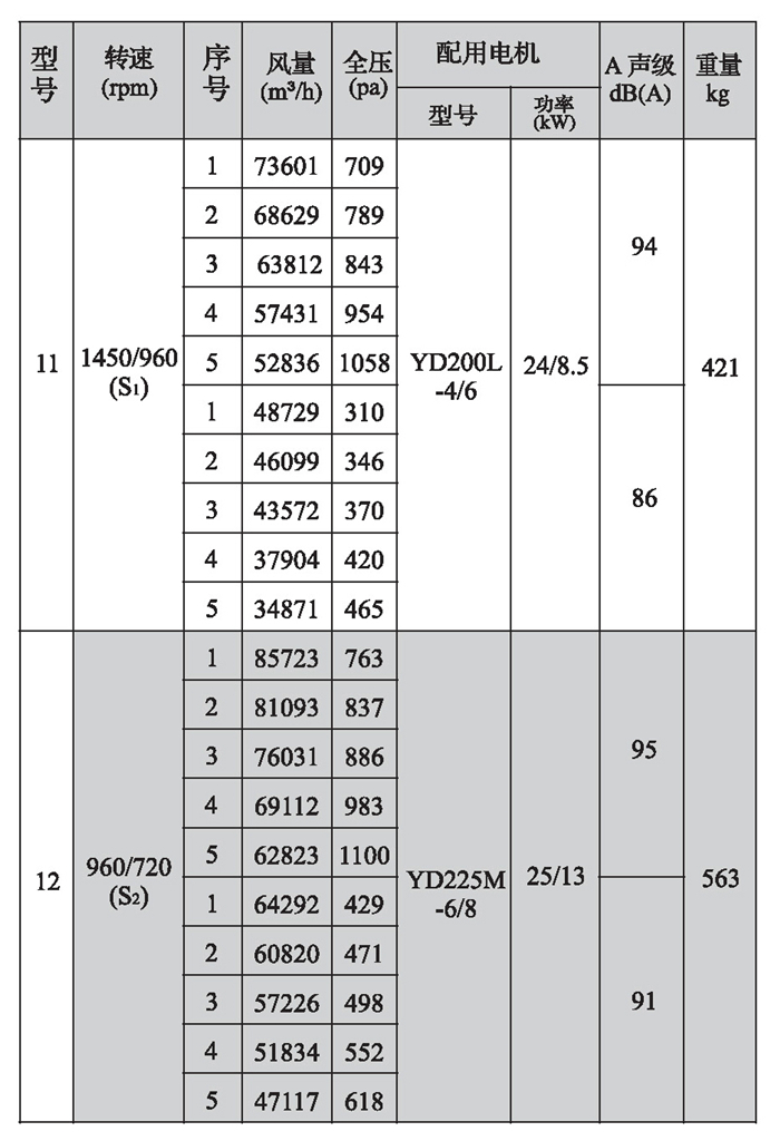 SWF-I系列混流式風機性能參數(4)